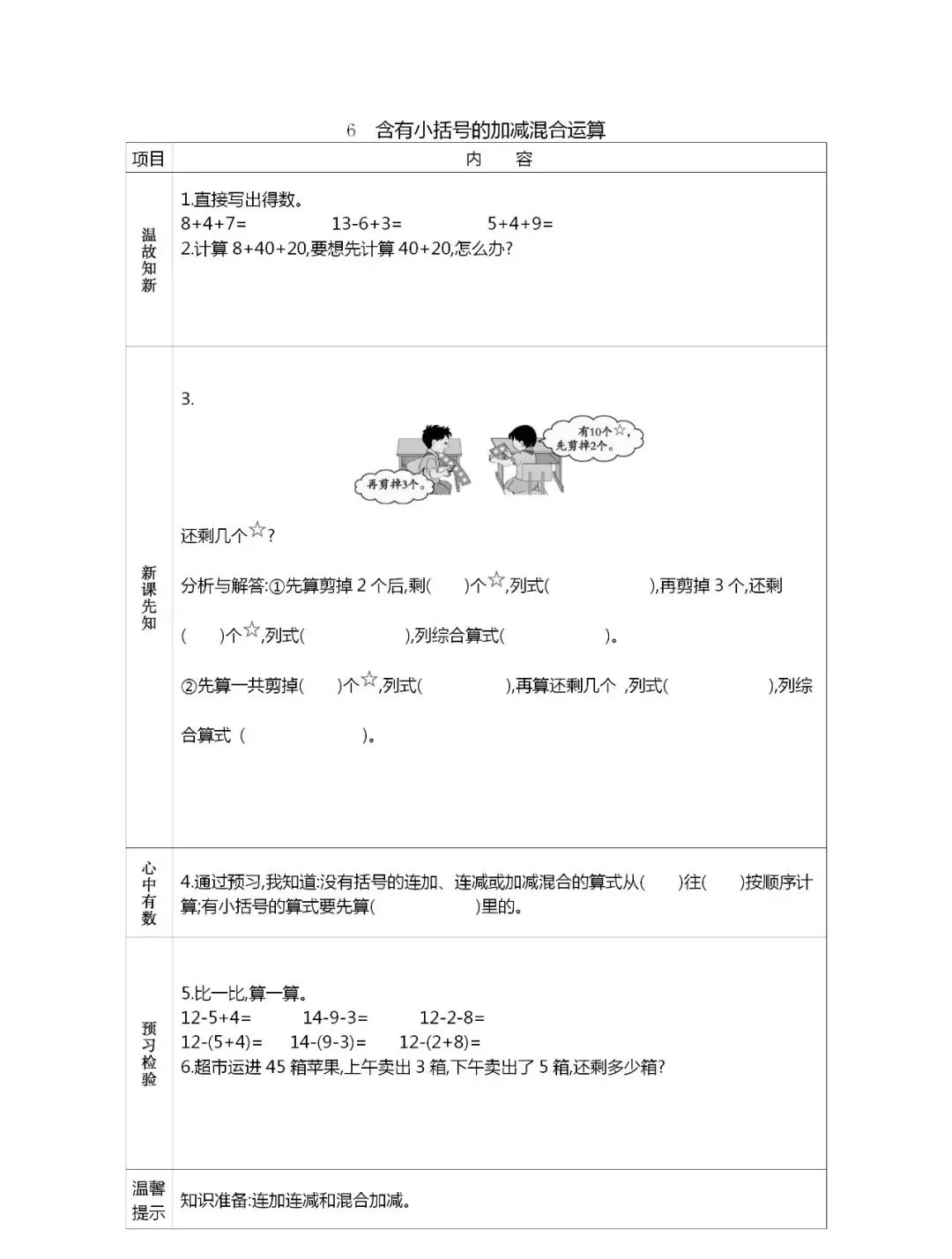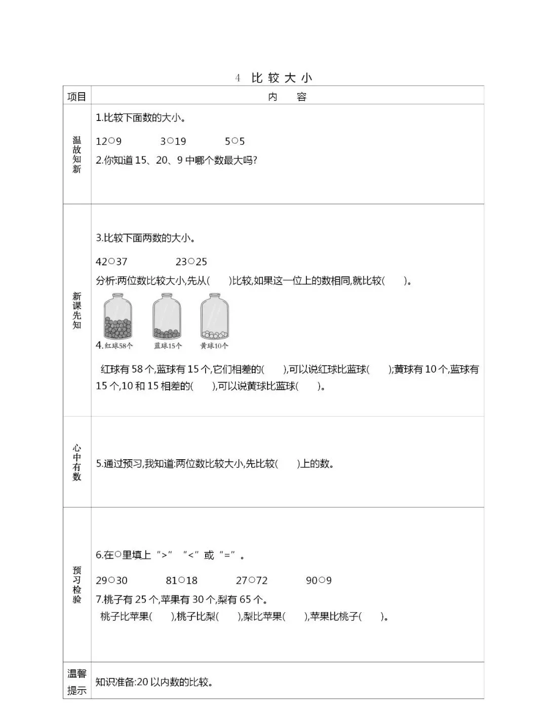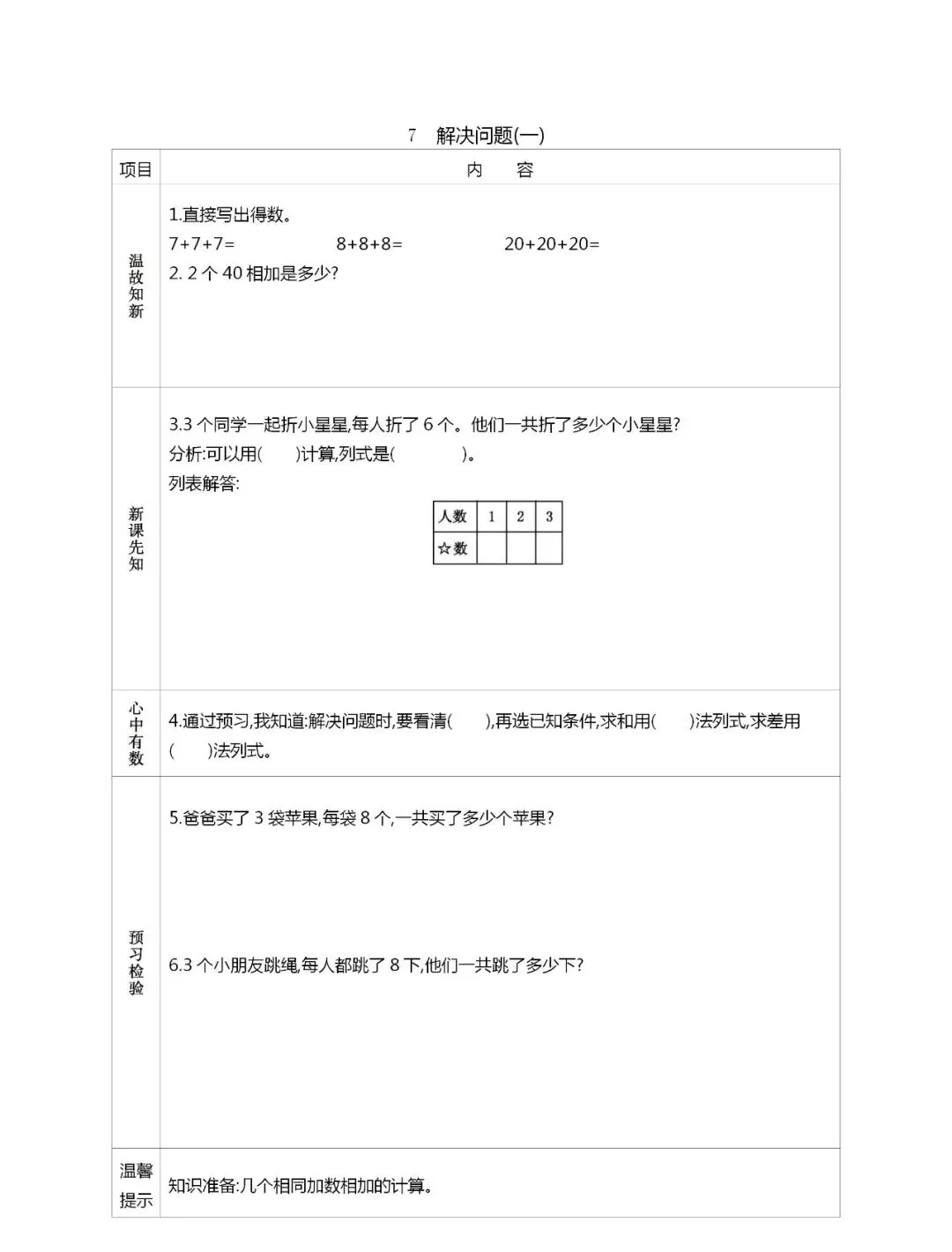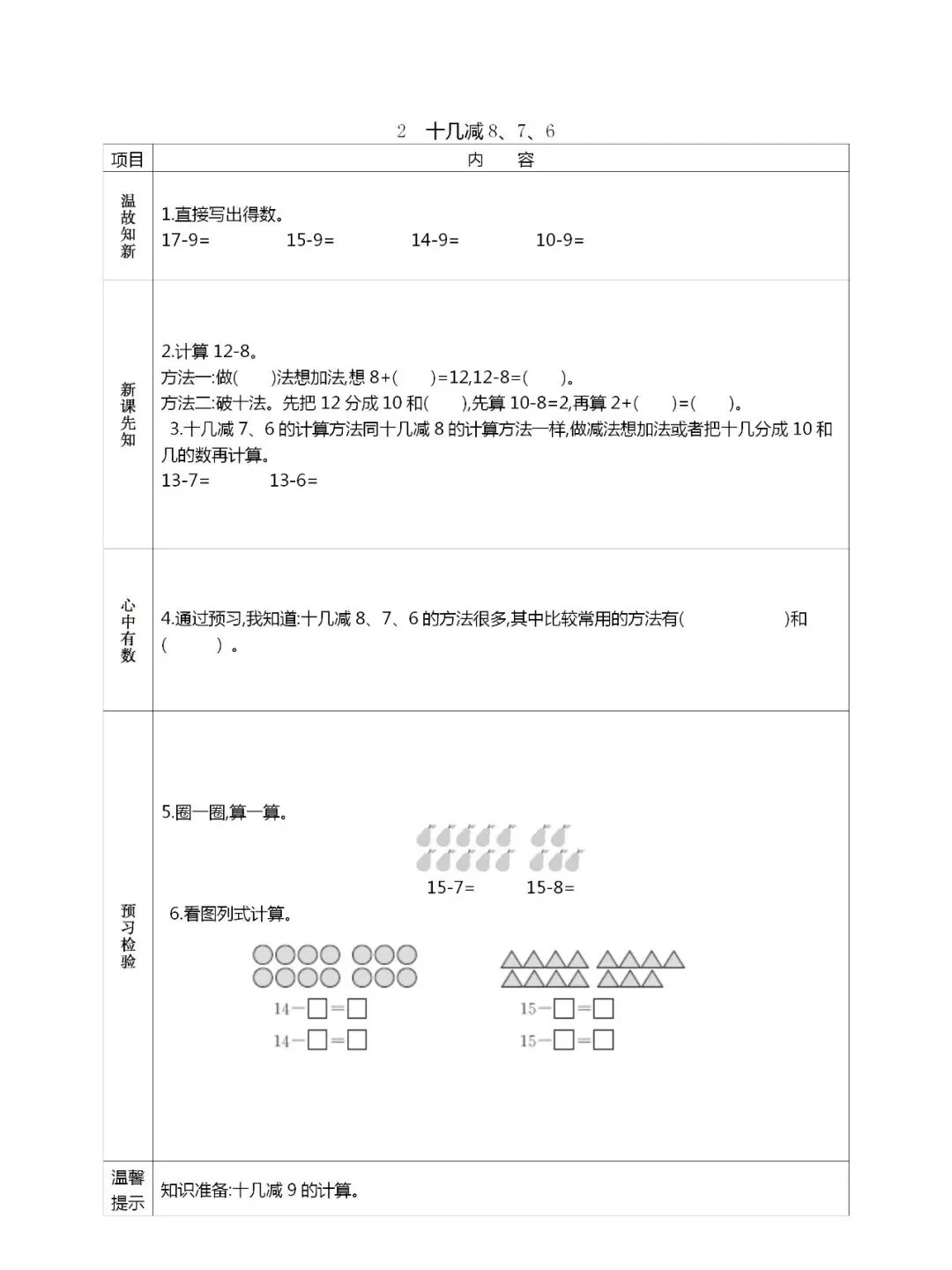 人教版一年级数学(下册)课前预习单,可打印!