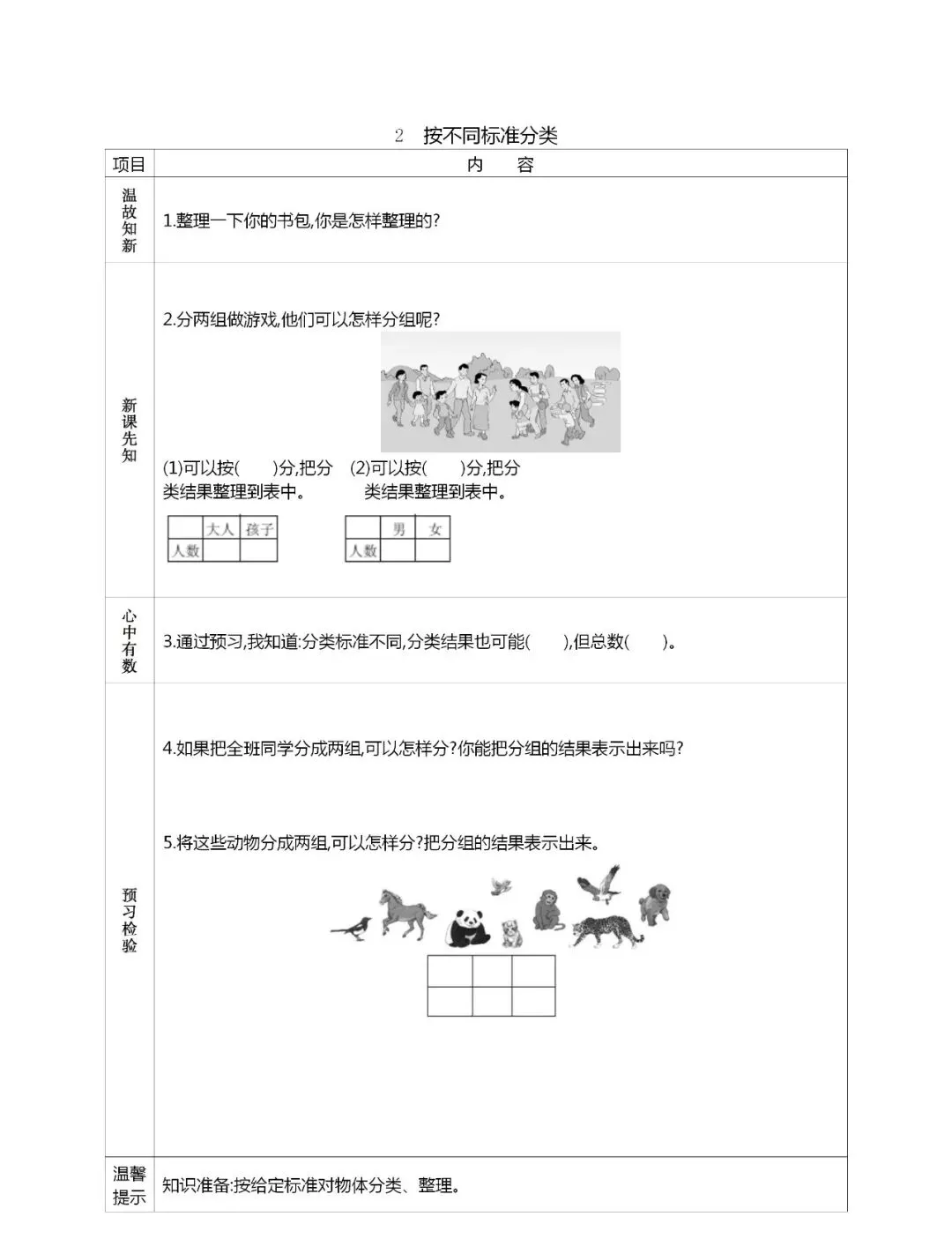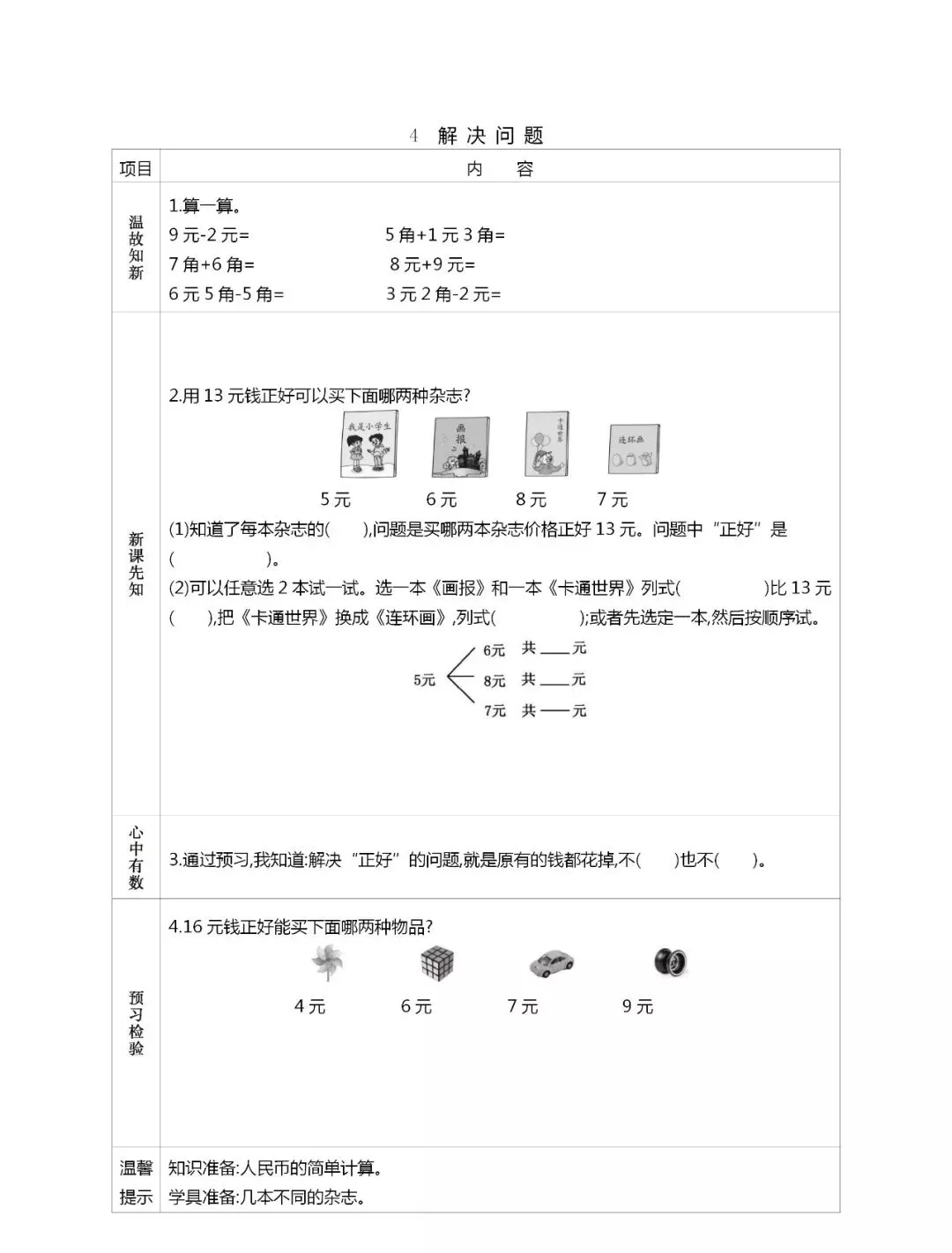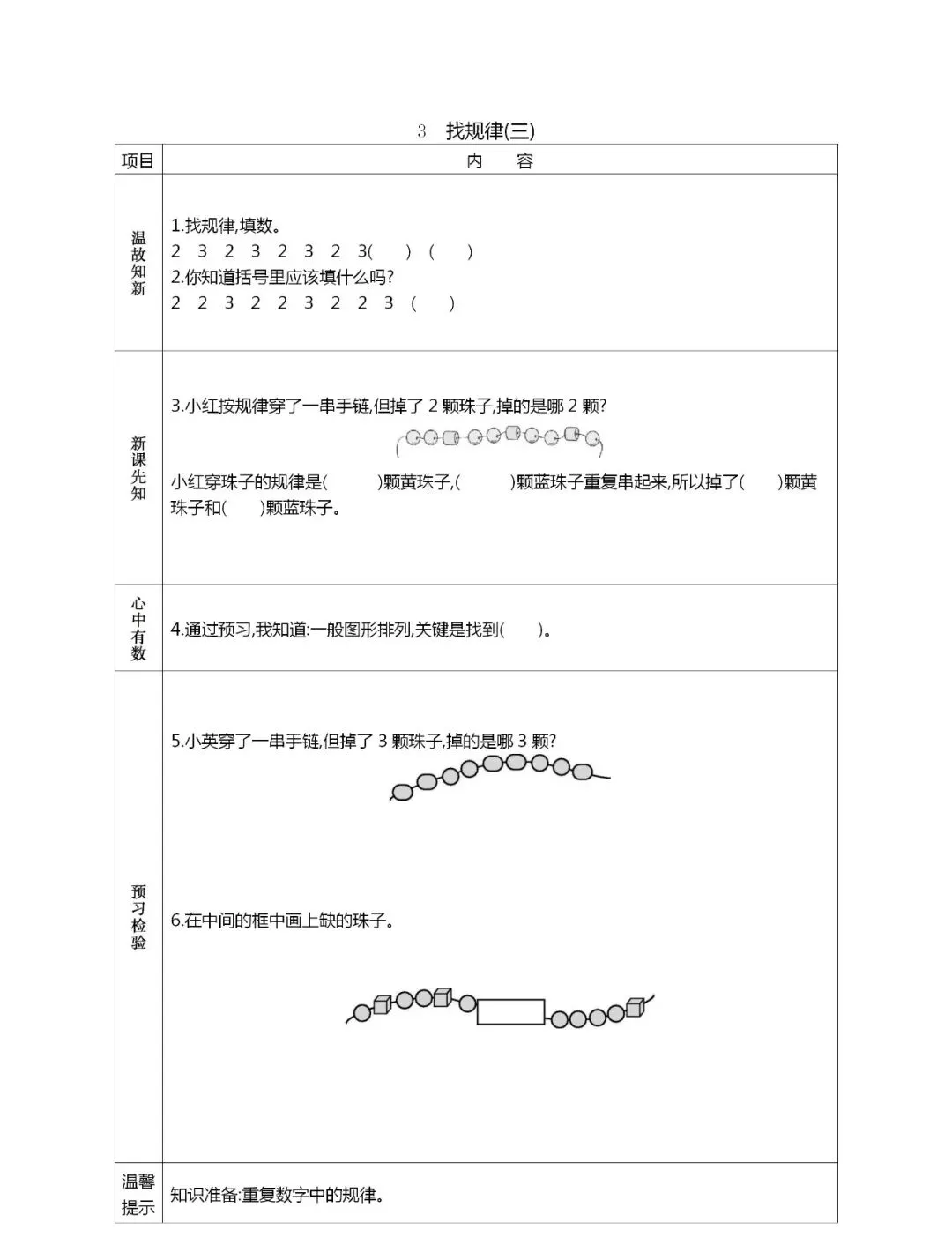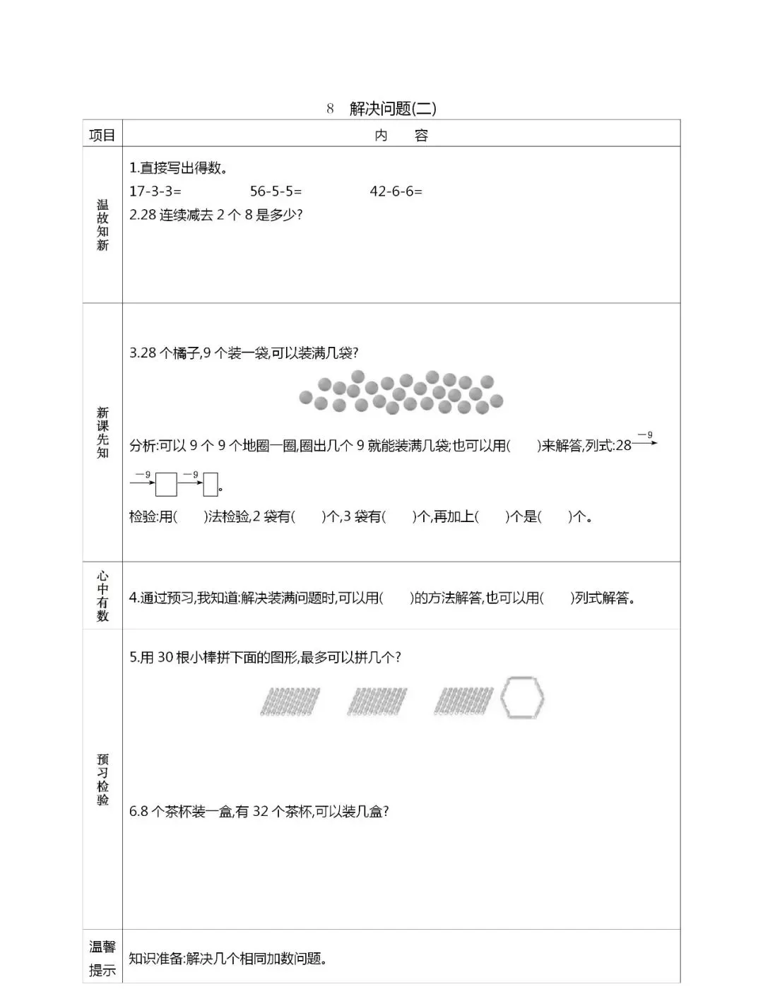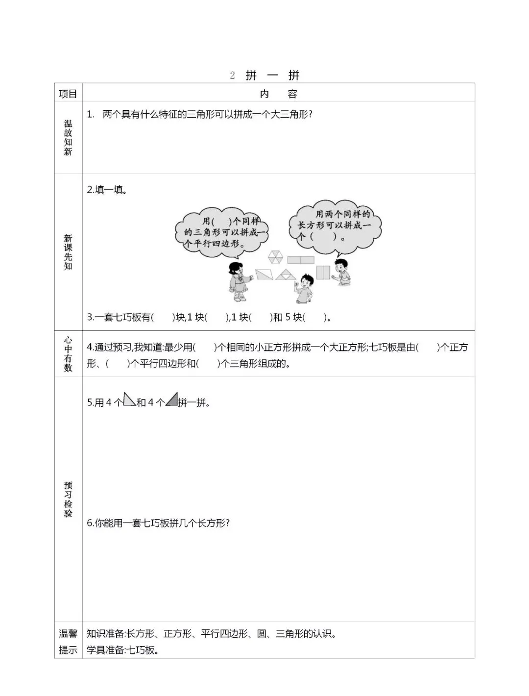 人教版一年级数学(下册)课前预习单,可打印!