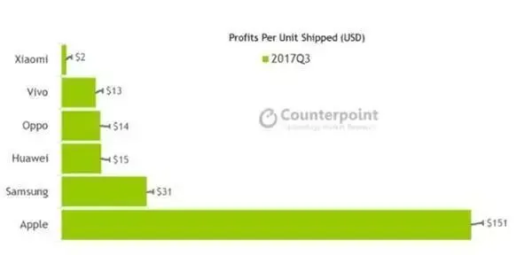 一般情况下,如果用户对手机上的某个功能发出强烈抗议后,厂商都会第一时间做出改进,但广告问题似乎是个例外。其实看完近期 Counterpoint 发布的各大手机厂商的利润数据,这个问题的答案就比较明了了。目前全球手机市场中,苹果和三星攫取了绝大部分的利润,国产厂商的单机利润并不高。即使是出货量位居全球第四的手机巨头小米,单台手机的利润也仅有 2 美元。