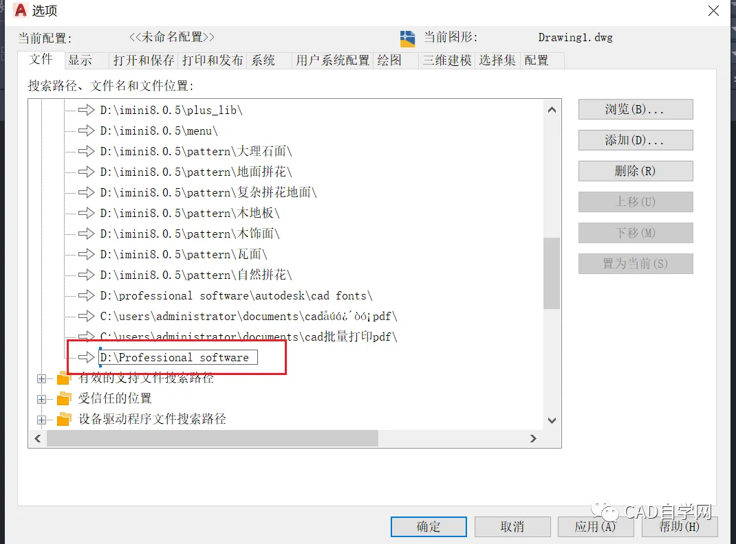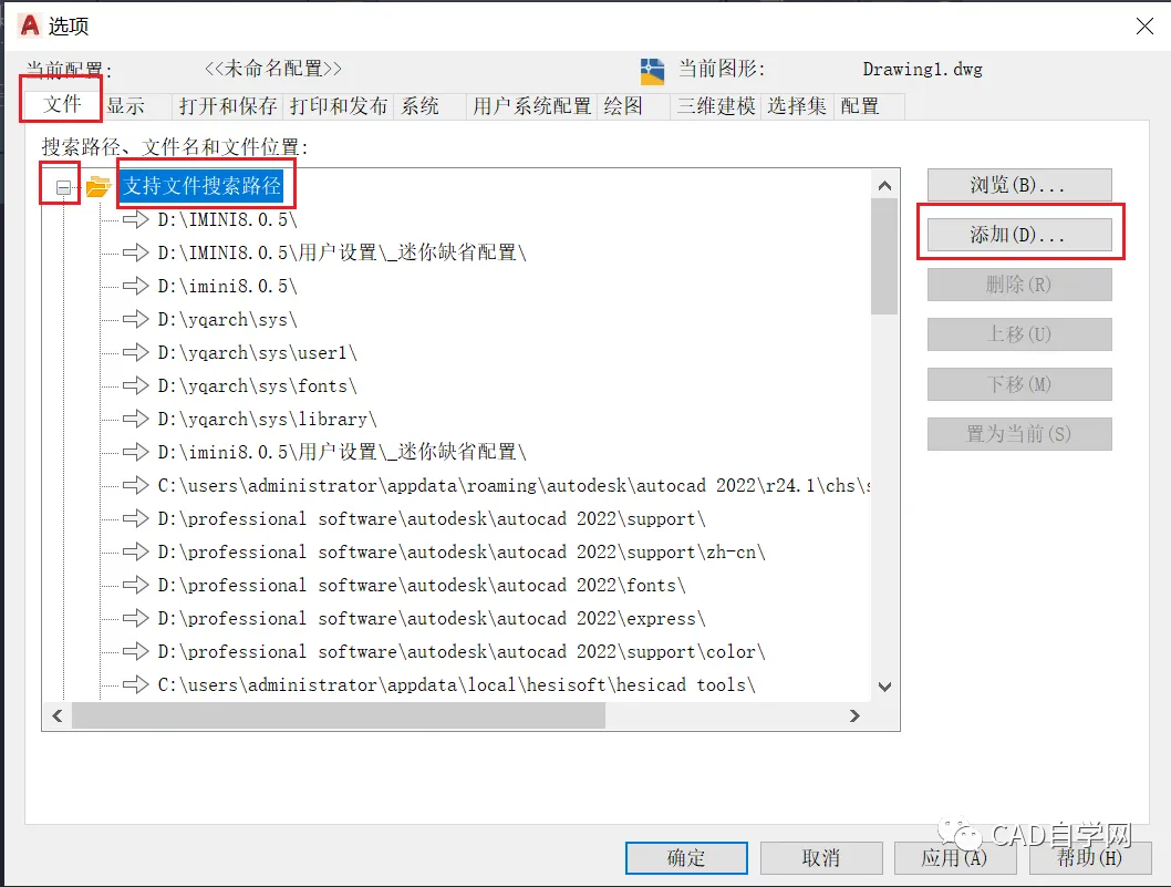 选择文件,点开支持搜索文件路径前面的+号,选中支持搜索文件路径,点击添加;