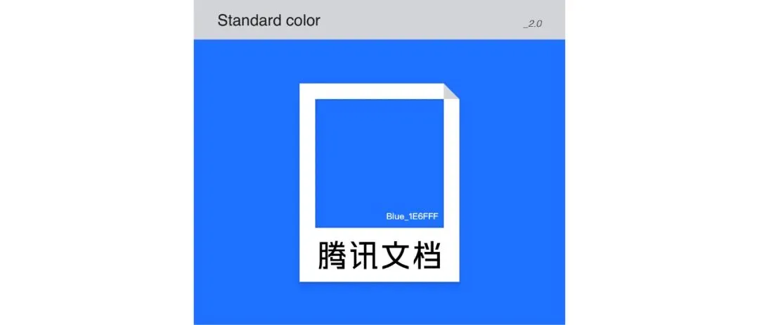 我们将标准色由平静的天蓝色,升级为更加生动、进取、科技、可靠的明亮清澈的钴蓝色。这种蓝色具有更多的电子意味,蕴含了更多的活力和想象力,承载了腾讯文档对未来数字世界新挑战的态度和形象的进化。