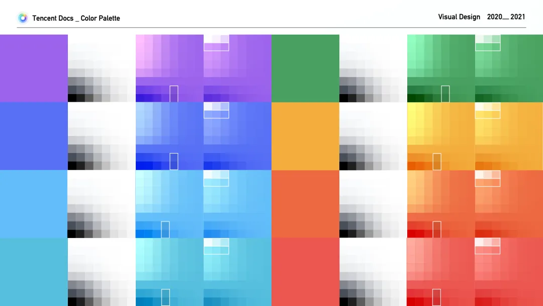 现在,我们有一个梯度丰富,能够支持腾讯文档设计系统的调色板了~