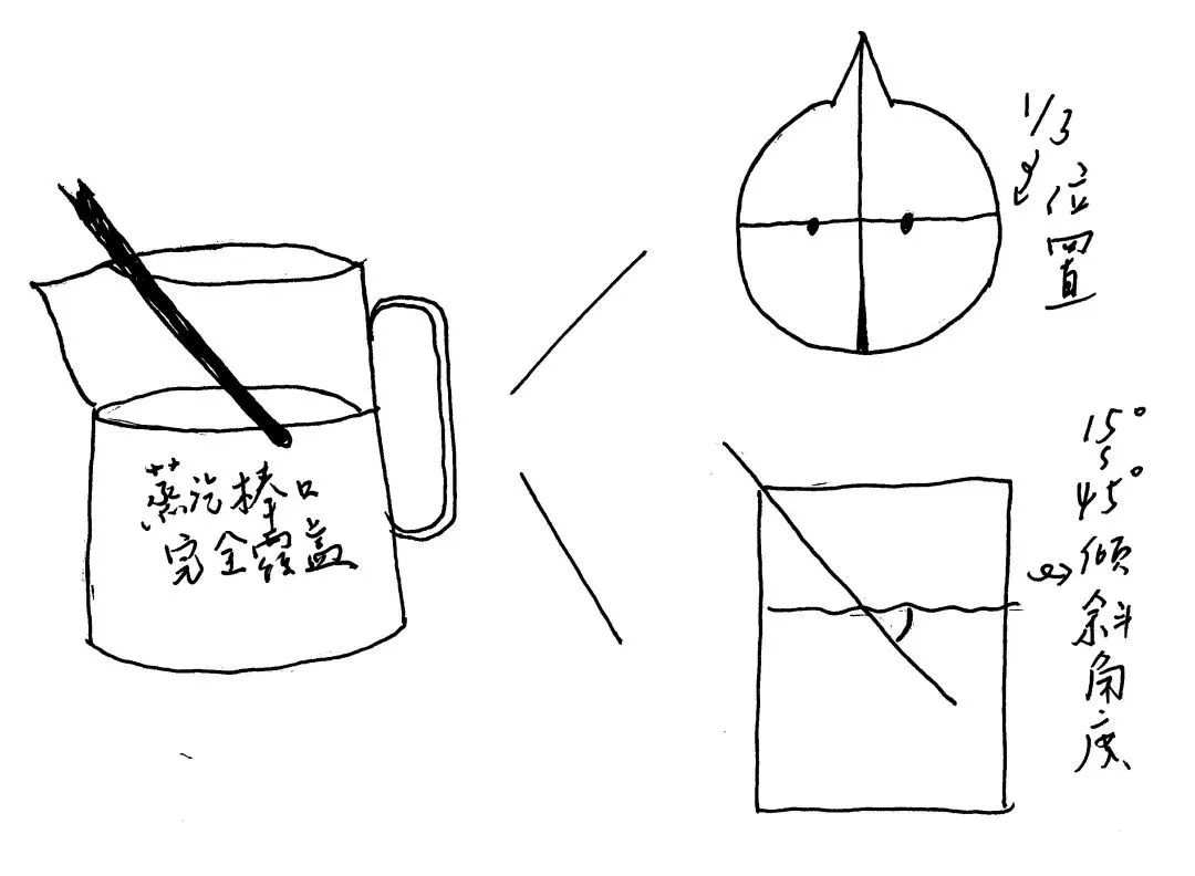 大淼老师还传授了一个打奶泡角度大法,让我更加信心满满了!简陋笔记借大家抄抄: