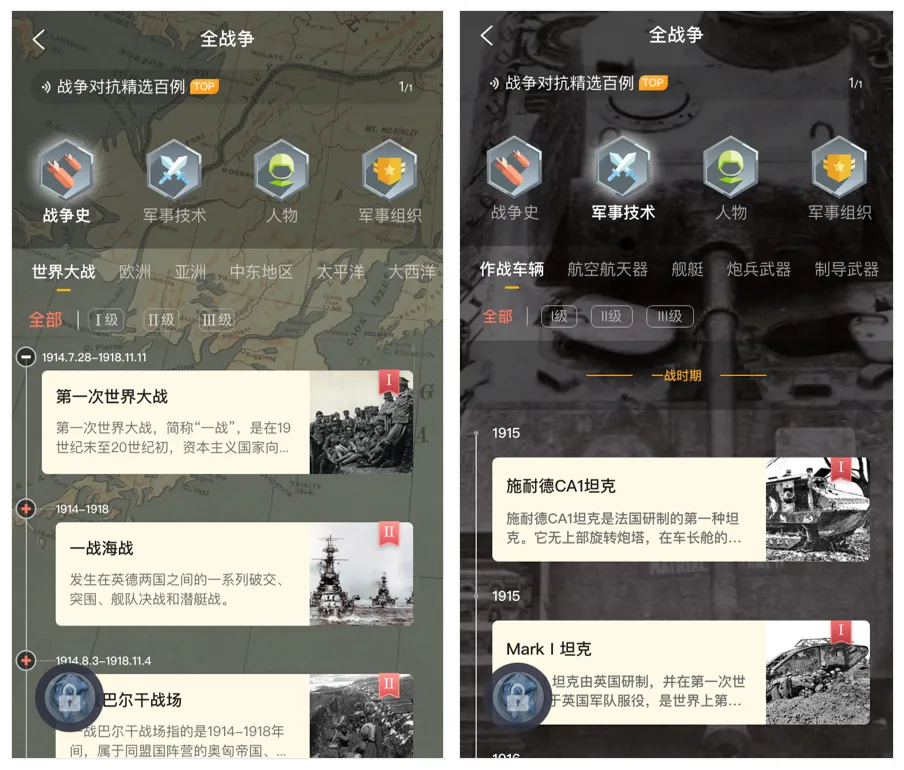 除了不断完善自己已有的内容,全历史也在开拓创新,打造更多细分领域,比如 1 个月前新增的军事技术模块,深受军事迷的喜爱~