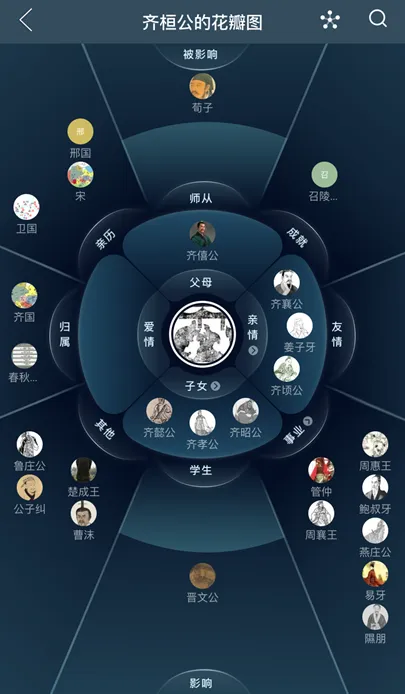 觉得人物之间的连线太细,还可以进入新增的「花瓣图」,这样就清晰很多啦,依旧是点击头像即可。