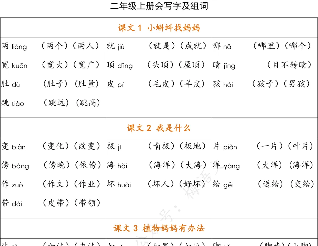 本站文章均为手工撰写未经允许谢绝转载:夜雨聆风 » 统编版语文二年级上册生字组词汇总丨可打印