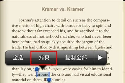 选中你要查的法语单词(只能查单词,查不了句子),长按,上方出现“拷贝、定义、共享”,选中“定义”,就会出现该词的解释,点击选中某一版本的释义,会弹出完整解释;点击返回即可退出词典回到原文。