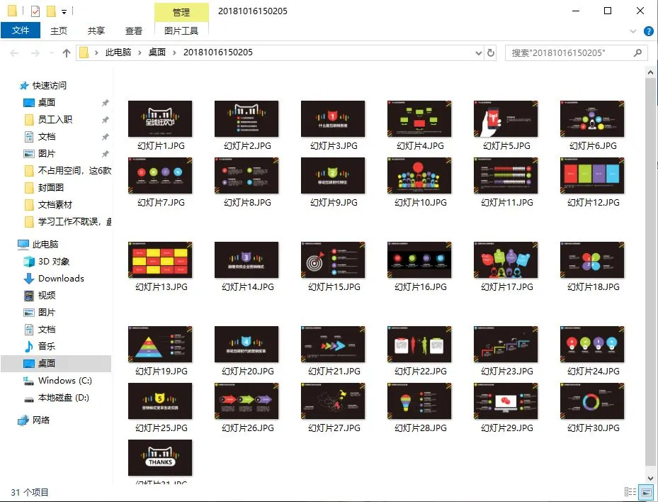 有时候我们在网上下载的一些PPT模版的配图和背景图等非常好看,我们想要提取这些图片,一种方法是右击另存为图片,另一种方法可以一次提取PPT中的所有图片,操作如下:
