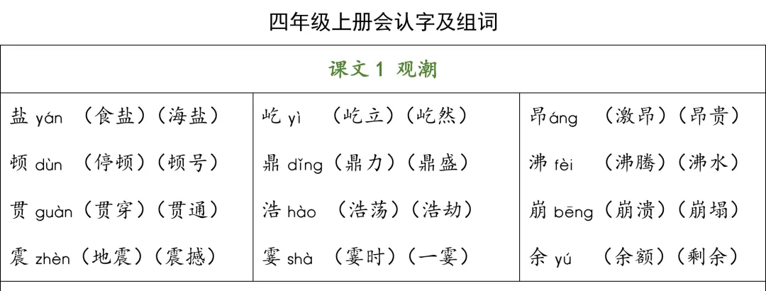统编版语文四年级上册生字组词汇总丨可打印