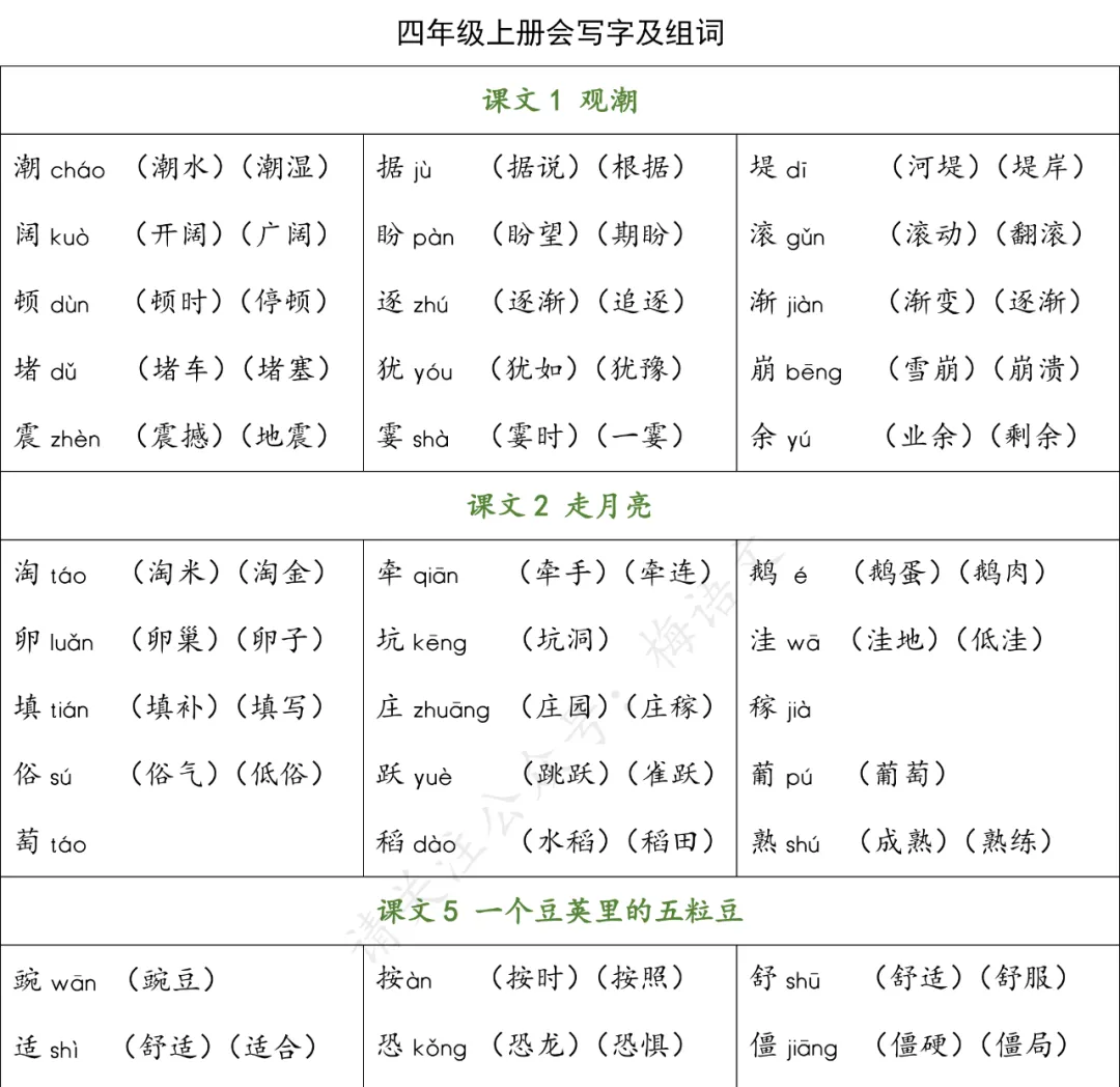 本站文章均为手工撰写未经允许谢绝转载:夜雨聆风 » 统编版语文四年级上册生字组词汇总丨可打印