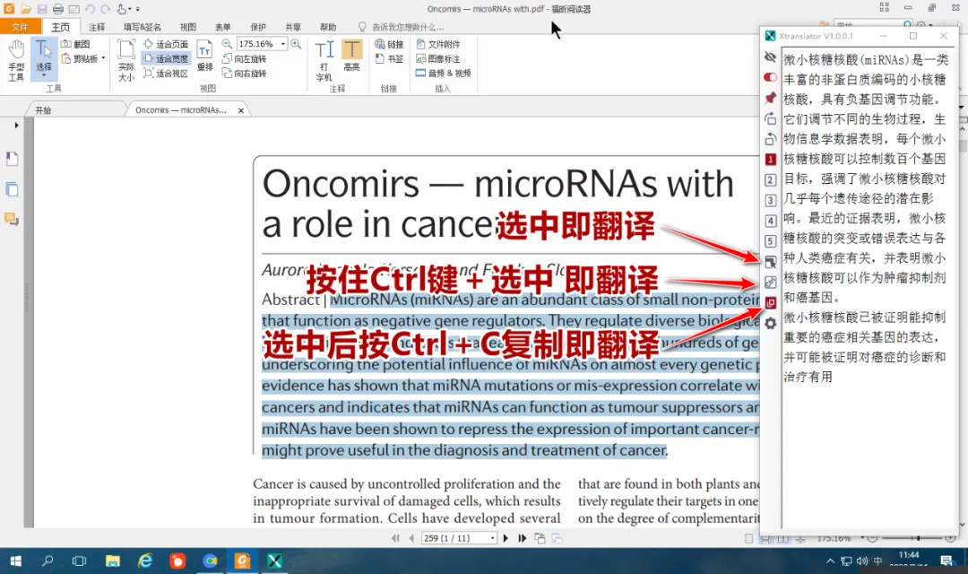 由于Xtranslator不依赖PDF阅读器,因此只要是能选中并复制文字的都可以用来阅读翻译。