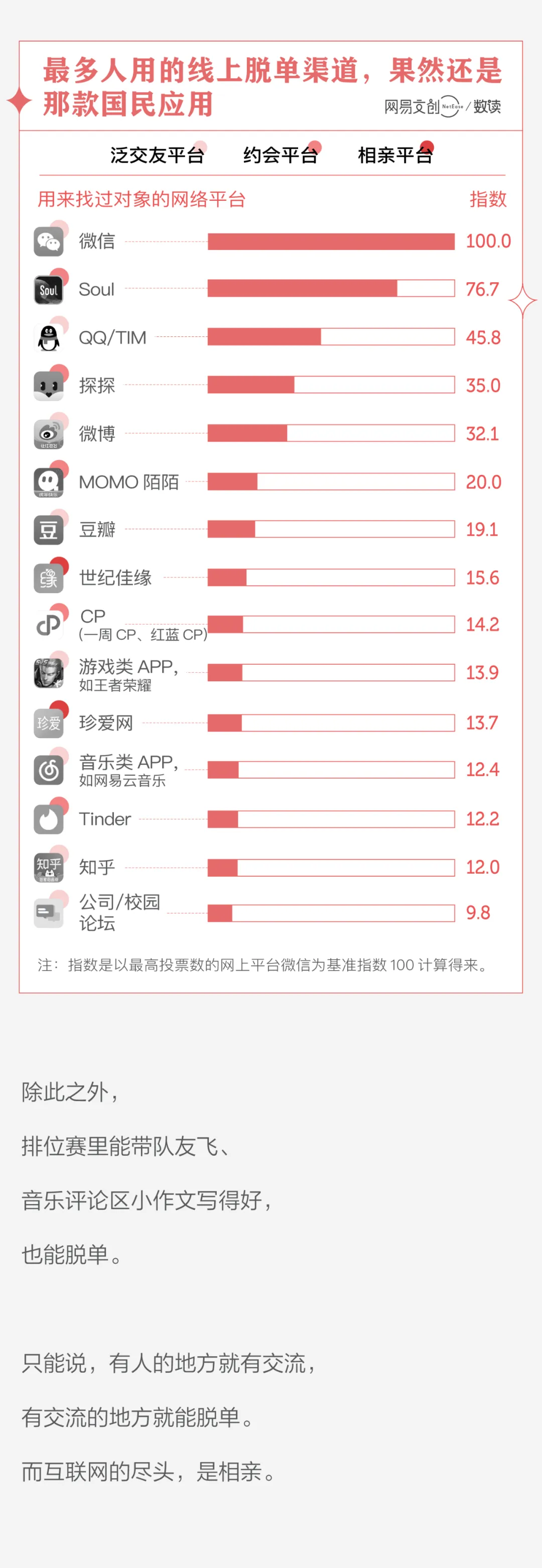 2、除了约会 APP,人们还会在各种社交 APP,甚至是在音乐类 APP、游戏类 APP 里脱单。