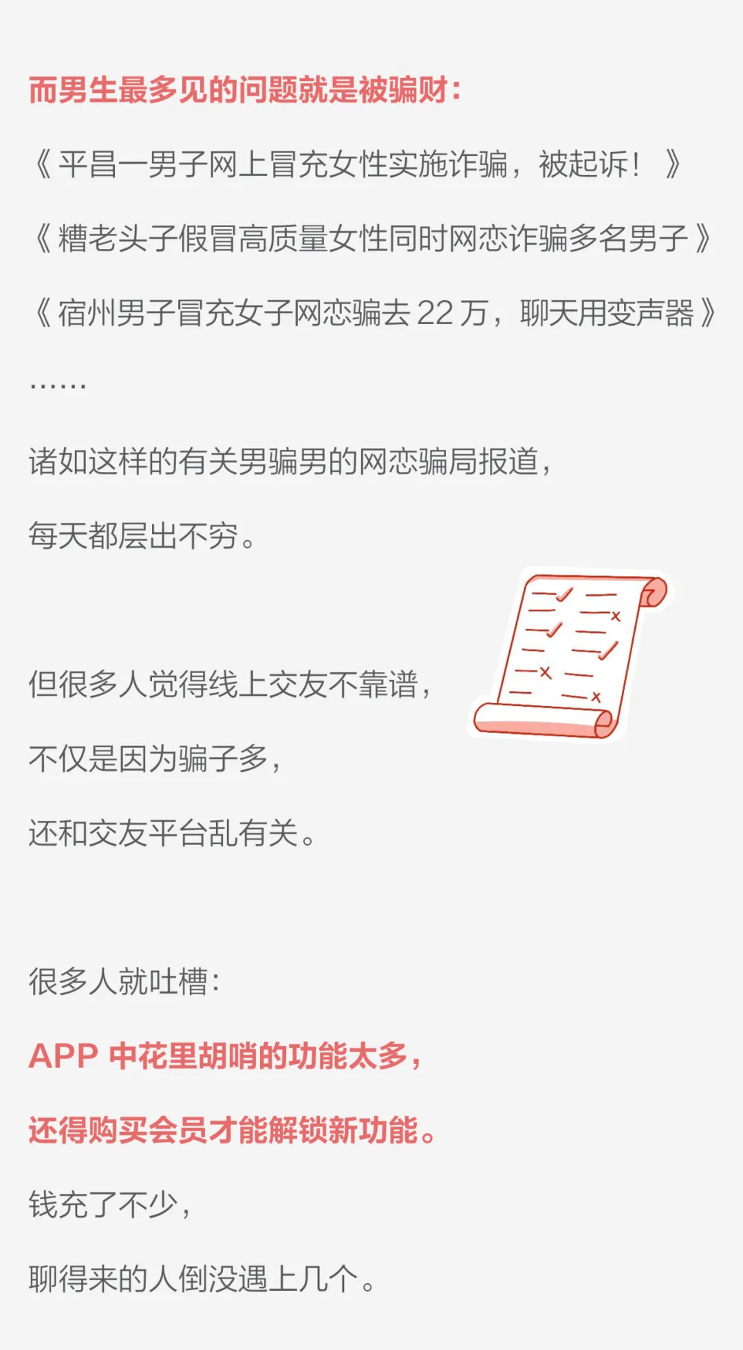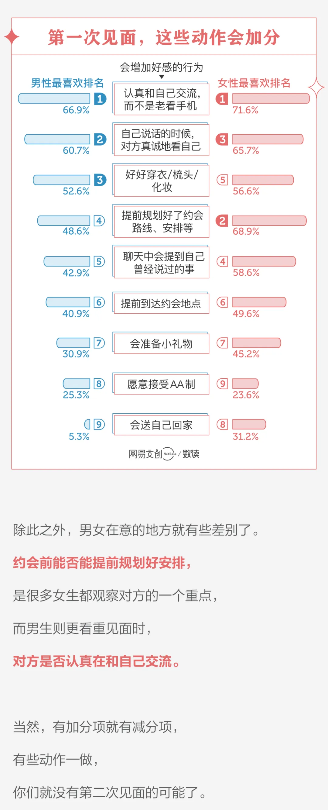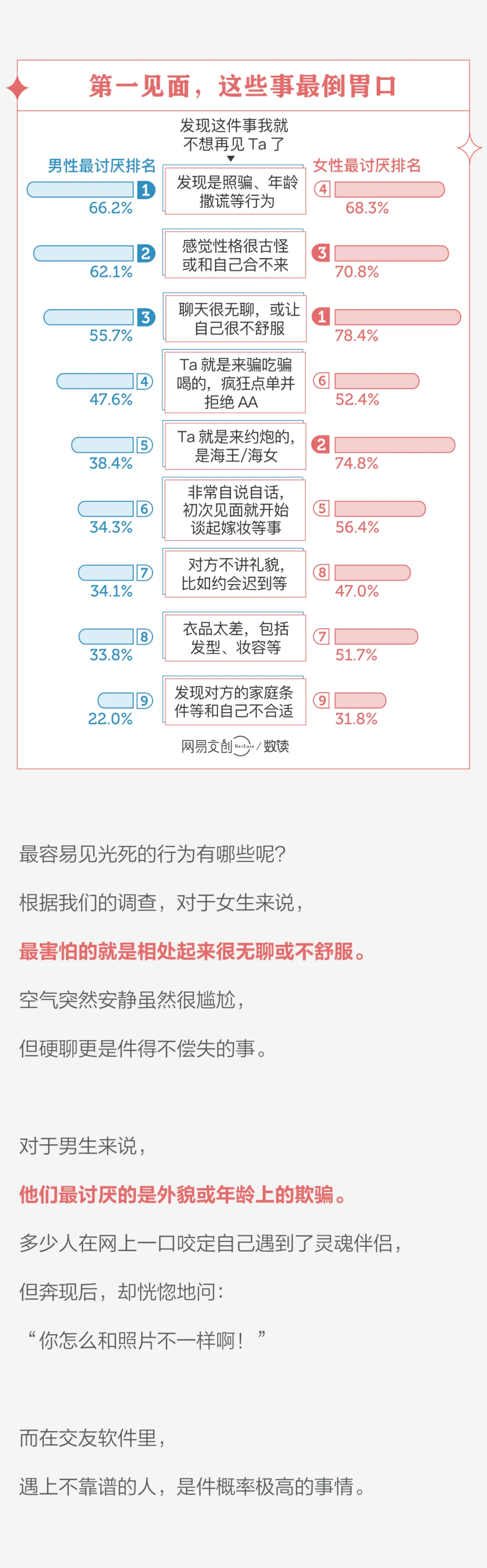 6、线下见面时,男性更在乎对方是否照骗,而女性更在乎对方聊天有没有意思。