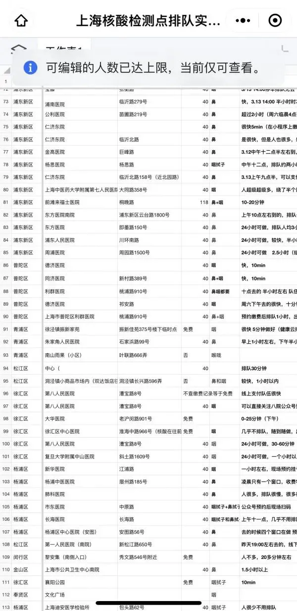 实时查询沪核酸检测点情况更新!共享互助文档刷屏!