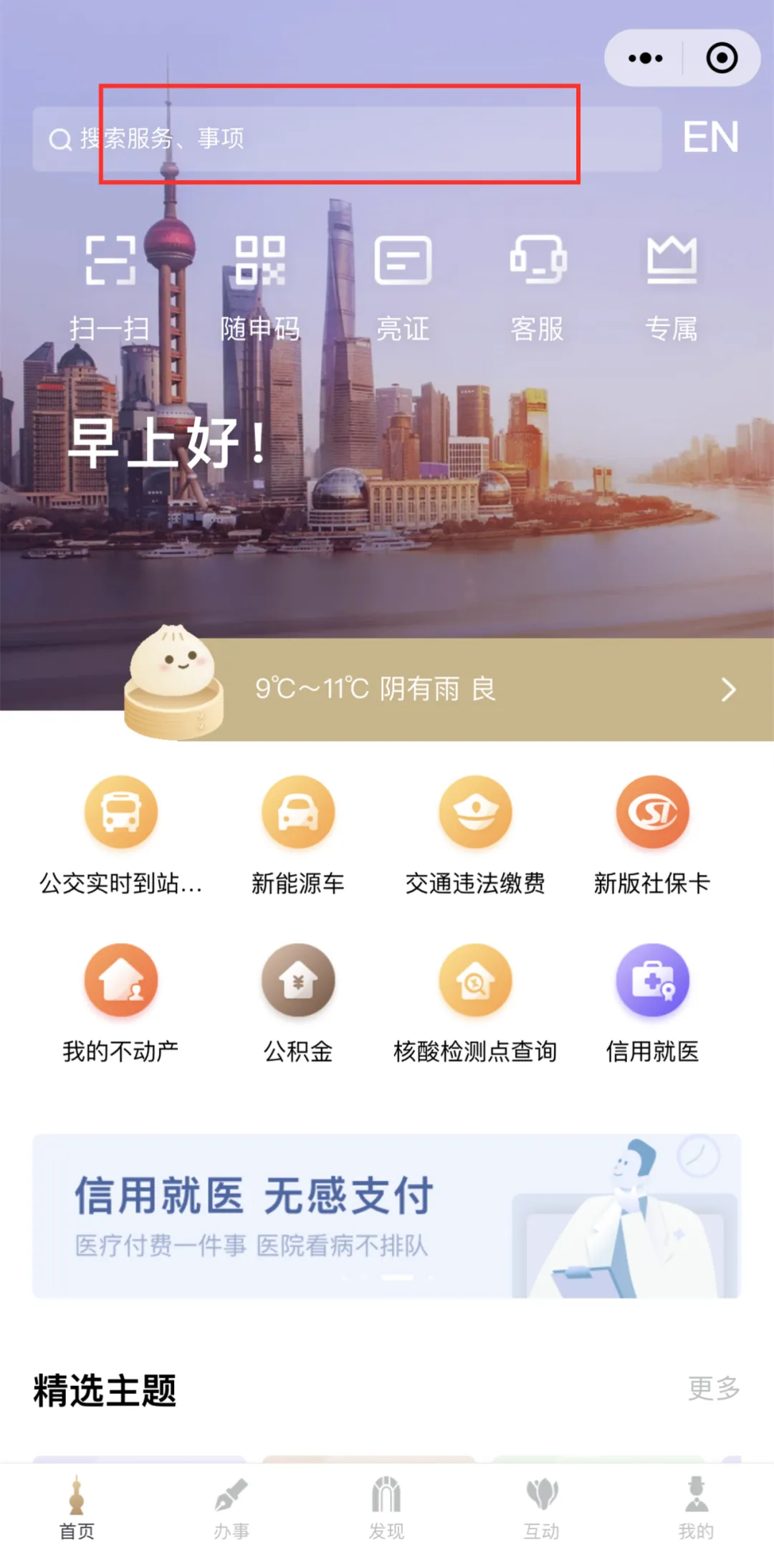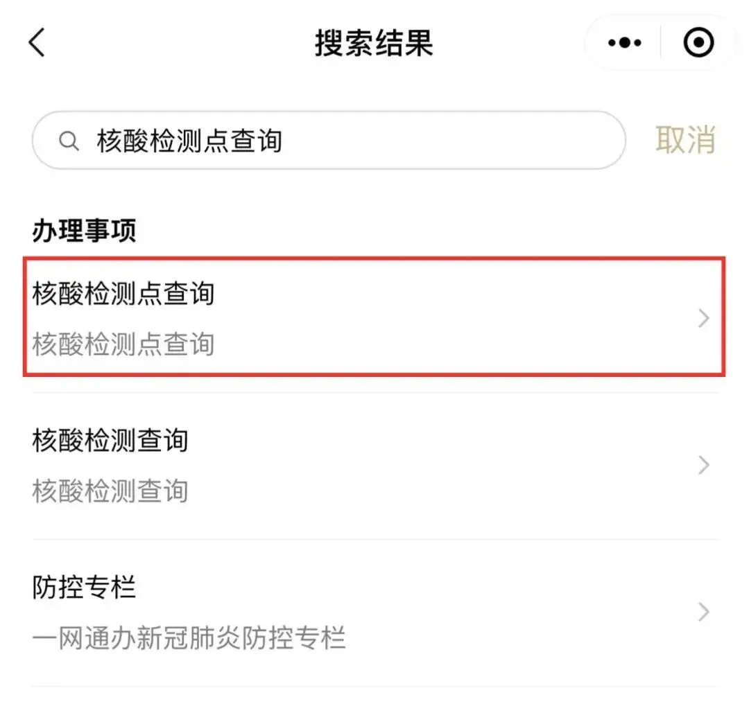 ①打开“随申办”微信小程序,点击搜索框输入“核酸检测点查询”