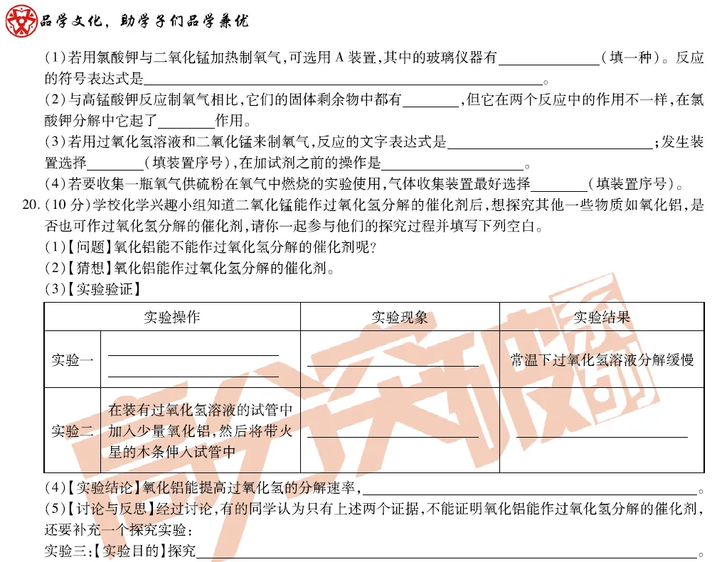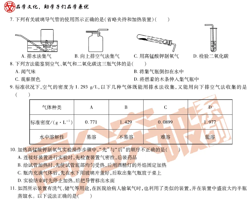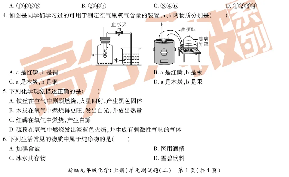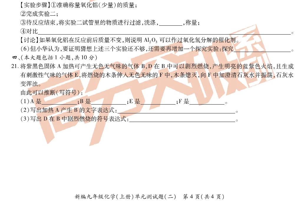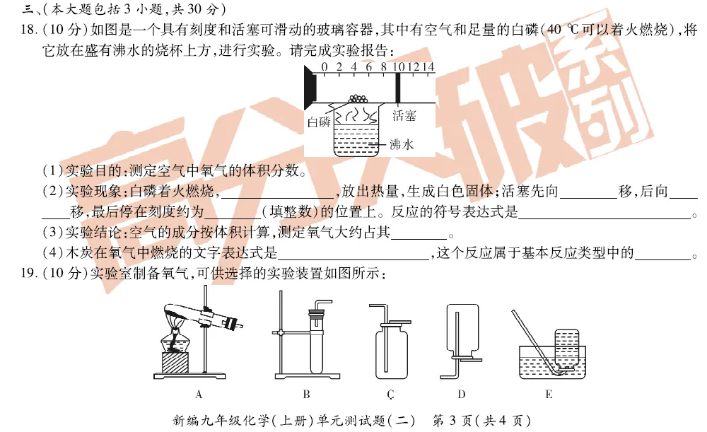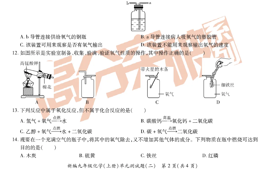 九上化学第二单元精品测试卷!附文档下载