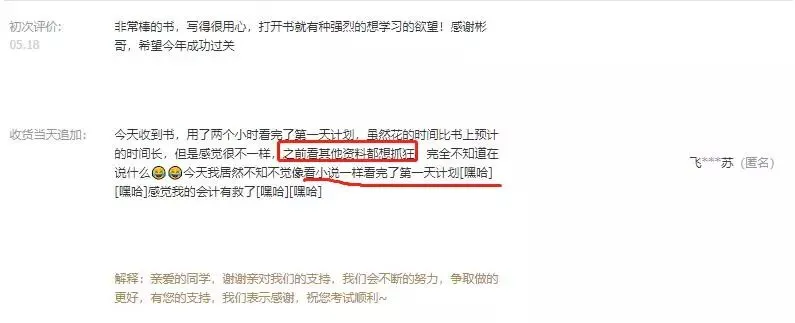 天猫上同学对纸质版《21天突破注会》教材的评价: