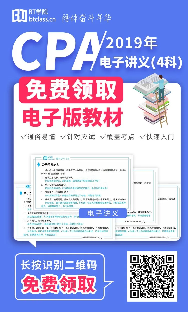讲义相当于电子版教材,你可以用讲义自学:如果你想快速通过CPA,搭配BT学院的CPA课程,效果更好~