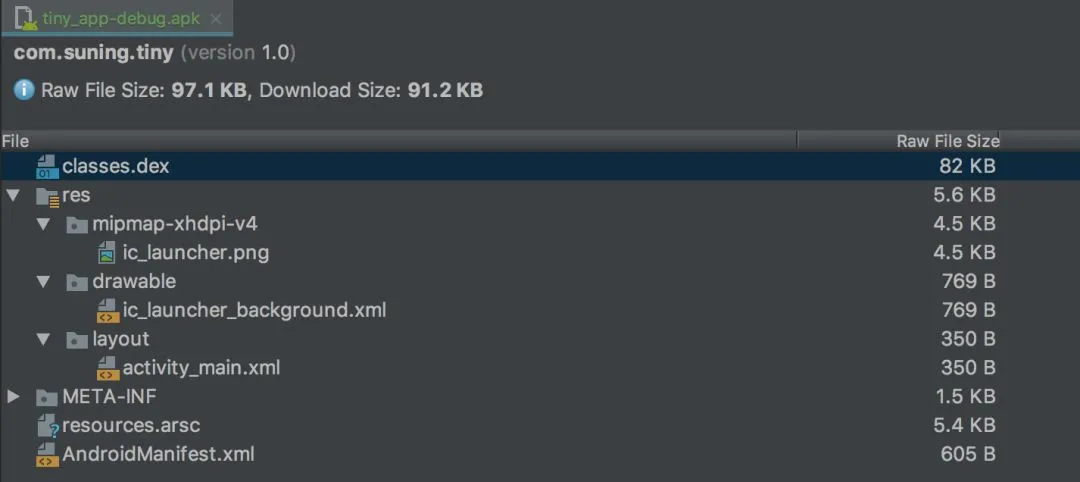先看下一个简单 APK 的文件结构,如下图: