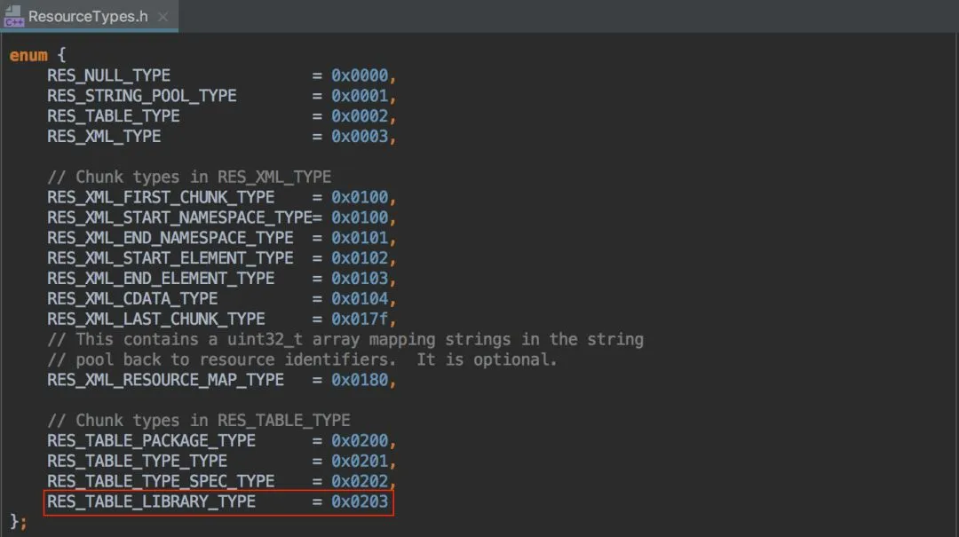 Library Chunk 在 Android 5.0 之后才出现,对应的类型如下图: