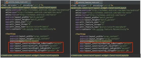 以 ConstraintLayout 为例,假如 Plugin 和 Host 的 Layout 布局中都包含 ConstraintLayout,并同时都设置了 ConstraintLayout 的自定义属性如下: