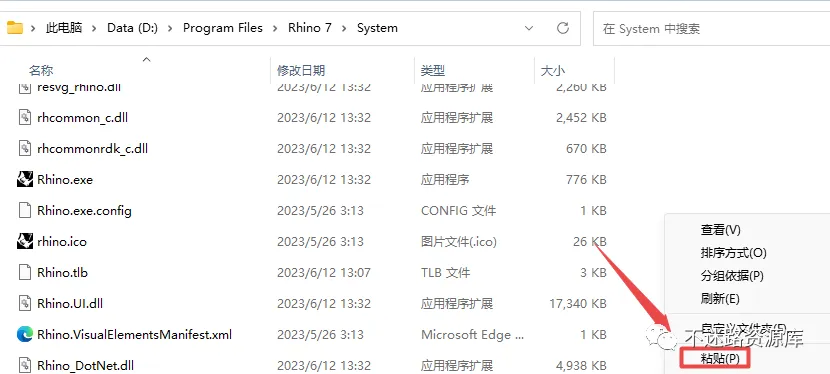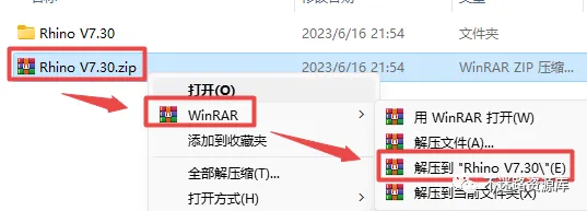 1.选中下载的压缩包,然后鼠标右键选择解压到“Rhino V7.30”
