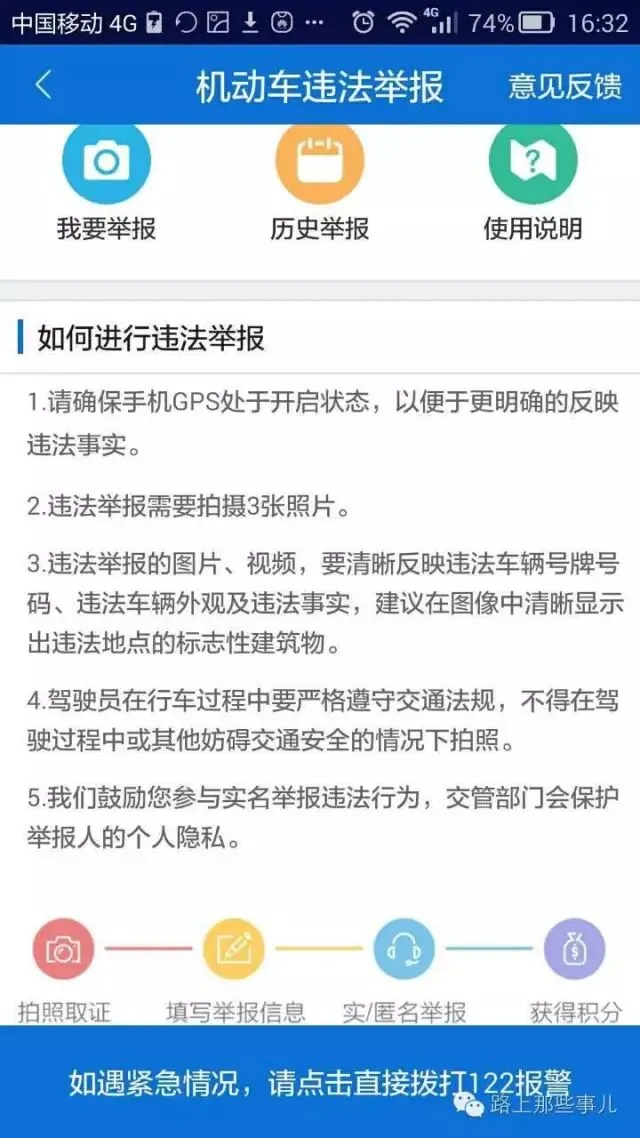 用户在举报时要开启GPS功能,至少拍摄三张及以上图片。违法举报的图片、视频要清晰反映违法车辆号牌号码、违法车辆外观及违法事实,建议在图像中清晰显示出违法地点的标志性建筑物。举报时间与违法行为发生时间不得超过72小时。警方提示,为保证安全,不得在驾驶过程中或其他有碍交通安全的情况下拍照。