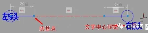 如图3所示,绘制好轴网末端圆圈,依然采用“重合”命令将圆心与轴网末端直线固定。若文档采用5号字,则圆圈直径10mm为宜。使用“线性”标注,对轴网末端直线进行约束。实际上,文字也是有中心点的,但目前无法使文字中心点与轴网末端圆心重合。