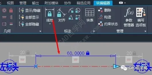 Step 3:建立块。如图4所示,建立块,选中所有对象,进入块编辑器环境。使用“重合”命令将文字中心固定到轴网末端圆心,这里注意,文字中心不易寻找,将鼠标放置于文字周围,直接出现一个红色靶标选择为重合第一点,重合第二点则选择圆。