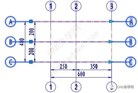 注:如上并不是轴网最方便的画法哦,但方法非常有借鉴价值,可以用在其他地方哦,如需快速画轴网还是天正方便。