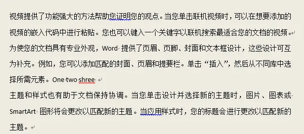 说明:【显示/隐藏编辑标记】命令还可以控制其他某些标记的显示,比如说手动换行符,下图中1处为手动换行符,2处为段落标记。
