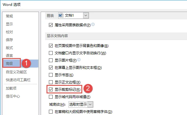 真心说,这个标记真没有隐藏的必要,可非想隐藏也不是没有办法。在Word中其实它的学名叫【裁剪标记】,在【Word选项】中取消【显示裁剪标记】的选择就可以了。