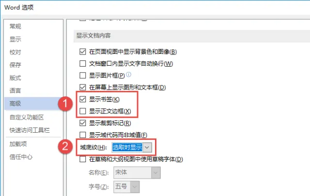 这些格式标记,大多可以通过【显示/隐藏编辑标记】命令来隐藏,但是域底纹、书签、正文边框和其它一些格式标记,则都需要借助【Word选项】来设置: