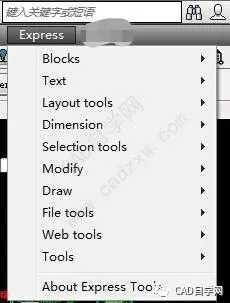 CAD在安装初始有个AUTOCAD EXPRSS TOOLS可选安装选项,建议安装时勾选。属于CAD本身自带的扩展工具,这个扩展工具只有英文显示,位于菜单栏最后一项。Express Tools扩展工具中也有好用巧妙的命令。