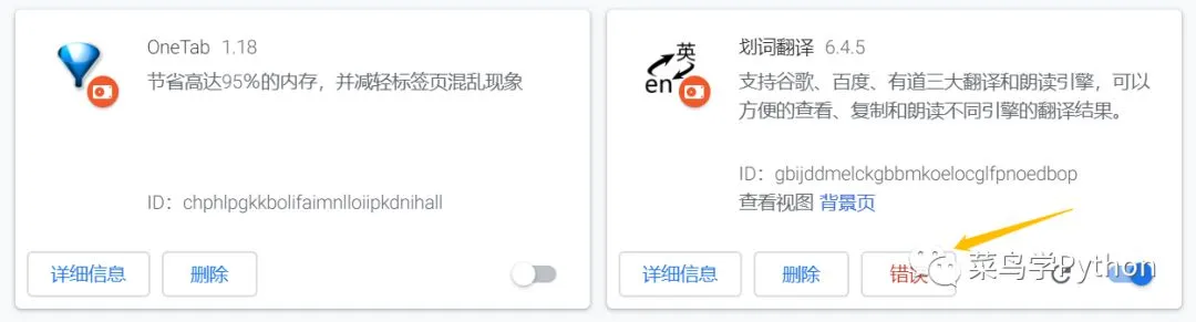 通过这种方式安装的插件,有一些会出现谷歌错误提示(下图),对于这种情况大家直接忽略就好,并不会影响使用。