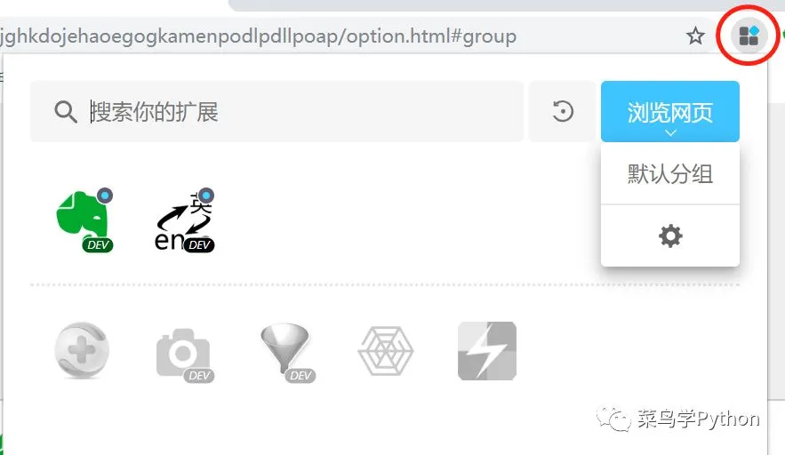 插件安装完后会在浏览器右上角出现下图中的图标,如果图标中带有”off“字样,说明划词翻译没有权限对当前页面进行翻译操作。