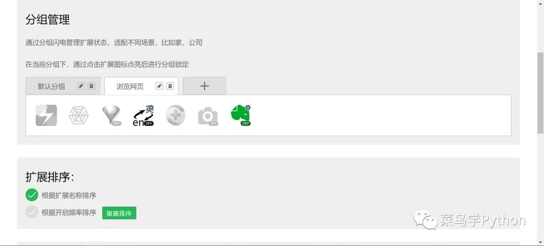 此外,通过上面这个界面还可以进入Extension Manager的设置页面(下图),在这里可以对插件进行分组管理,可以根据自身需求定制在处理不同工作时启用哪些插件,进一步提升了插件管理效率。