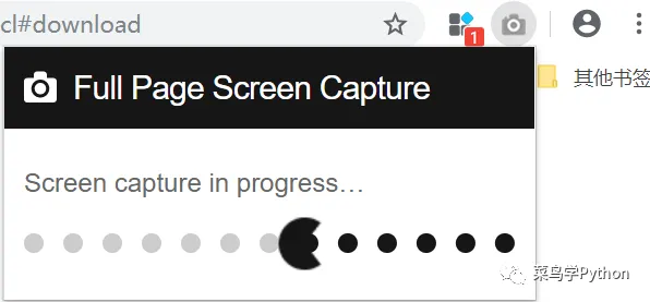 使用起来很简单,只需点击插件图标,就会自动开启对当前页面的截图操作,同时会出现下面图片中的动画,当黑点被”吃“光后截图操作就完成了。