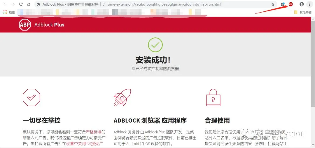 现在网页上的广告实在太多了,应付广告页面花费了我们大量时间。所以,像Adblock Plus这种广告屏蔽工具就出现了,安装好Adblock Plus之后在浏览器右上角会出现一个红色的小图标,同时会弹出一个新的标签页对Adblock Plus进行基本的说明。