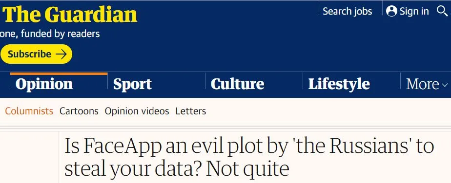 他们吓坏的原因倒是很简单:尽管这款APP通过了美国苹果公司和谷歌公司的审核,可谁让研发这款“FaceApp”的公司,来自“亡美国之心不死”的“邪恶”俄罗斯呢……