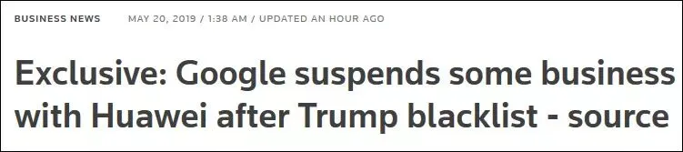 当地时间5月20日,路透社援引消息人士的话称,在美国政府把华为公司列入“实体名单”后,谷歌公司已经暂停与华为公司的商业往来。