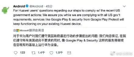 日前,Android(安卓)官方回应称,对于华为用户,我们能够保证在遵守美国政府要求的同时,保证在现有的华为设备上继续支持诸如Google Play以及通过Google Play Protect提供的安全服务。