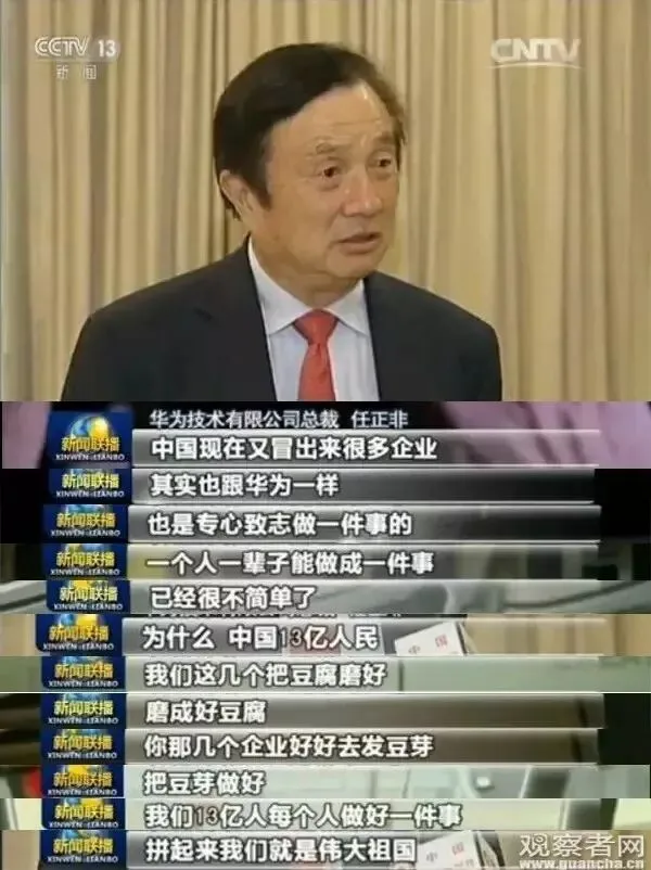 2016年6月1日,极少出现在镜头前的华为创始人任正非在《新闻联播》露面,谈及参加科技创新大会的感想: