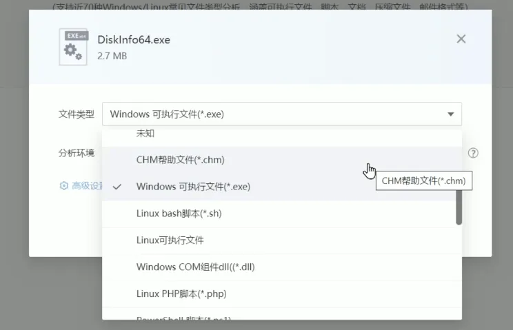 和微步一样,腾讯哈勃系统也支持多种类型的文件。