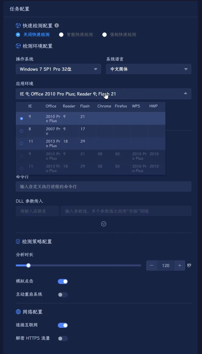 说回沙箱云,上传文件时,可以在右边选择详细的环境参数。