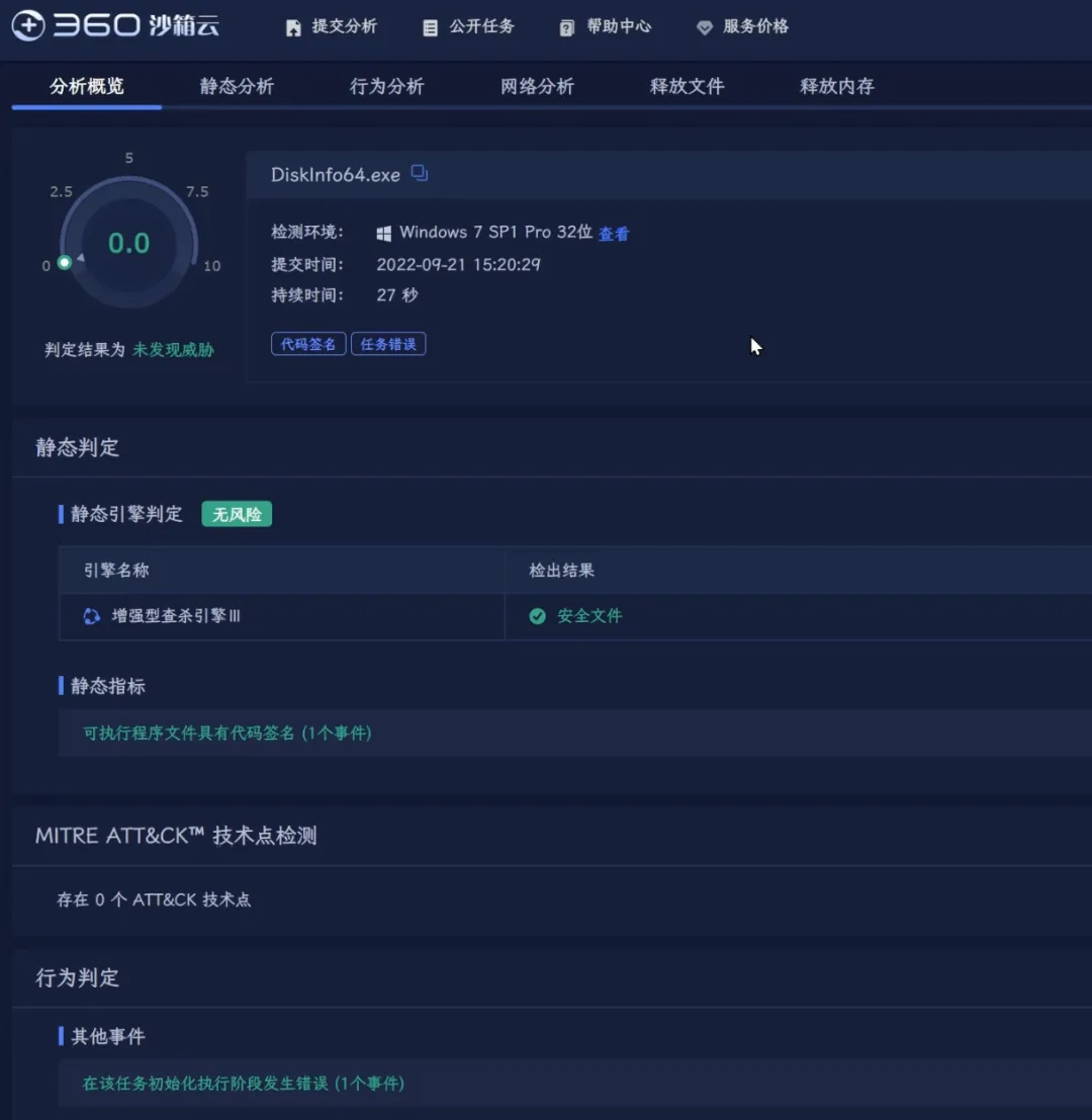 微步云沙箱是一款做得比较好在线检测工具,近期更新之后界面也更美观了。