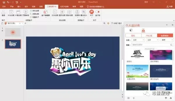 打开 PA 口袋动画,在右边的个人设计库,可以插入很多好看的动画。