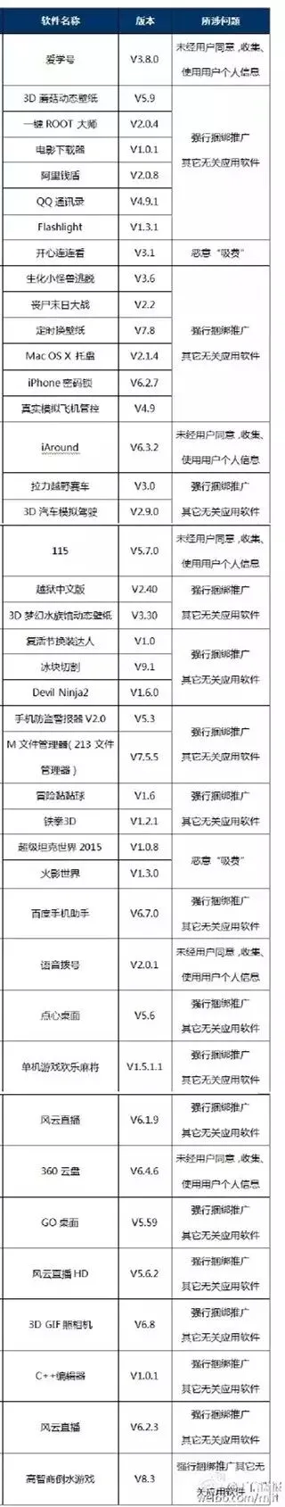 涉及违规收集使用用户个人信息、恶意“吸费”、强行捆绑推广其他无关应用软件等问题。