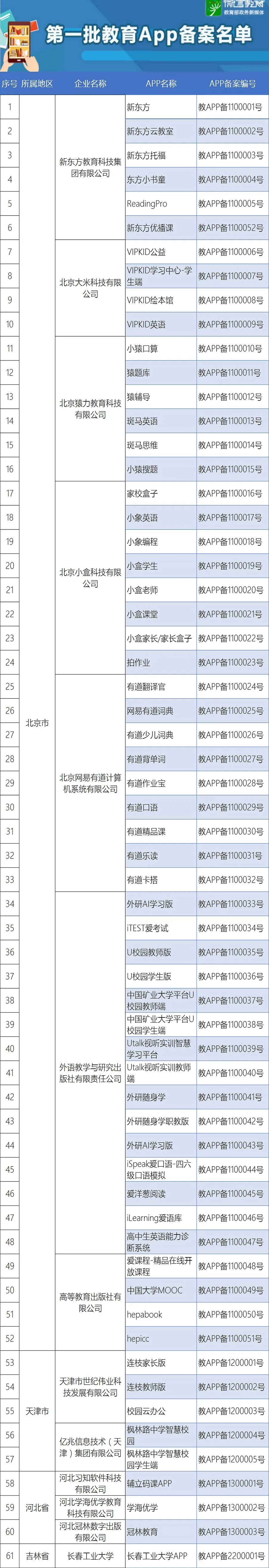 名单 | 第一批教育APP备案名单公布,152个教育App 通过核验