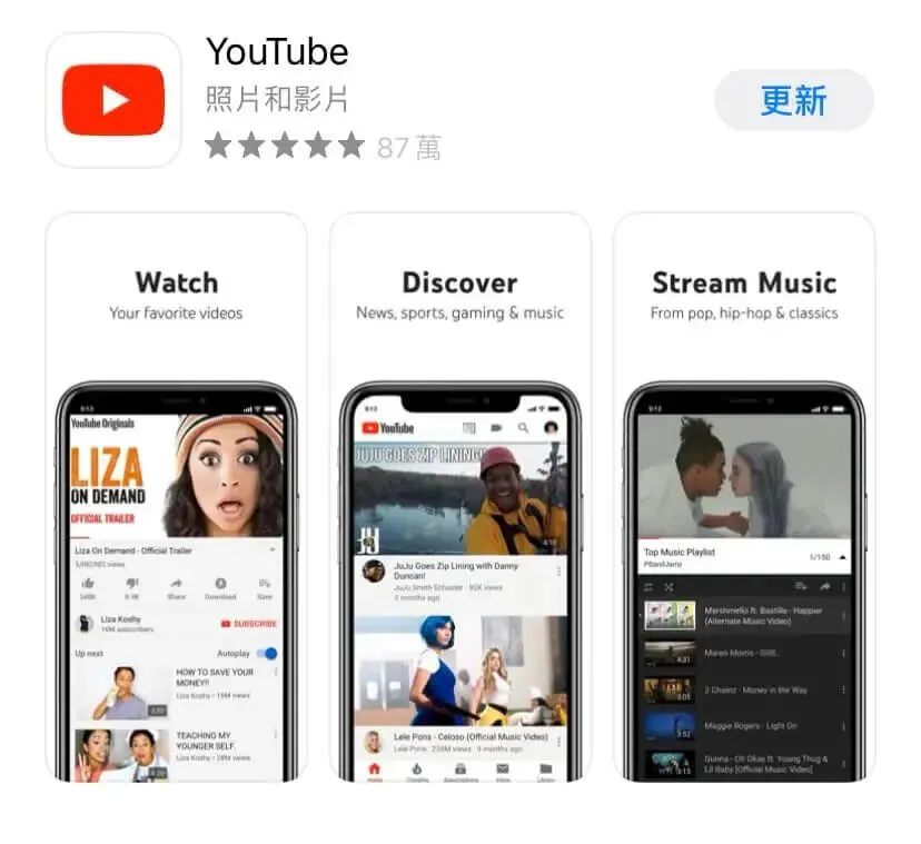 我个人认为YouTube排在第八名的位置差不多,我预期前5名的App会是通讯及社交类。YouTube身为全球最大的影音分享网站,让使用者随时随地上传、观看、分享及评论影片,直播的功能也深受喜爱。现在就算家里没电视也没关系,看YouTube就够了。